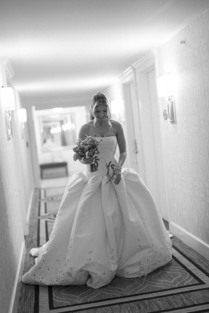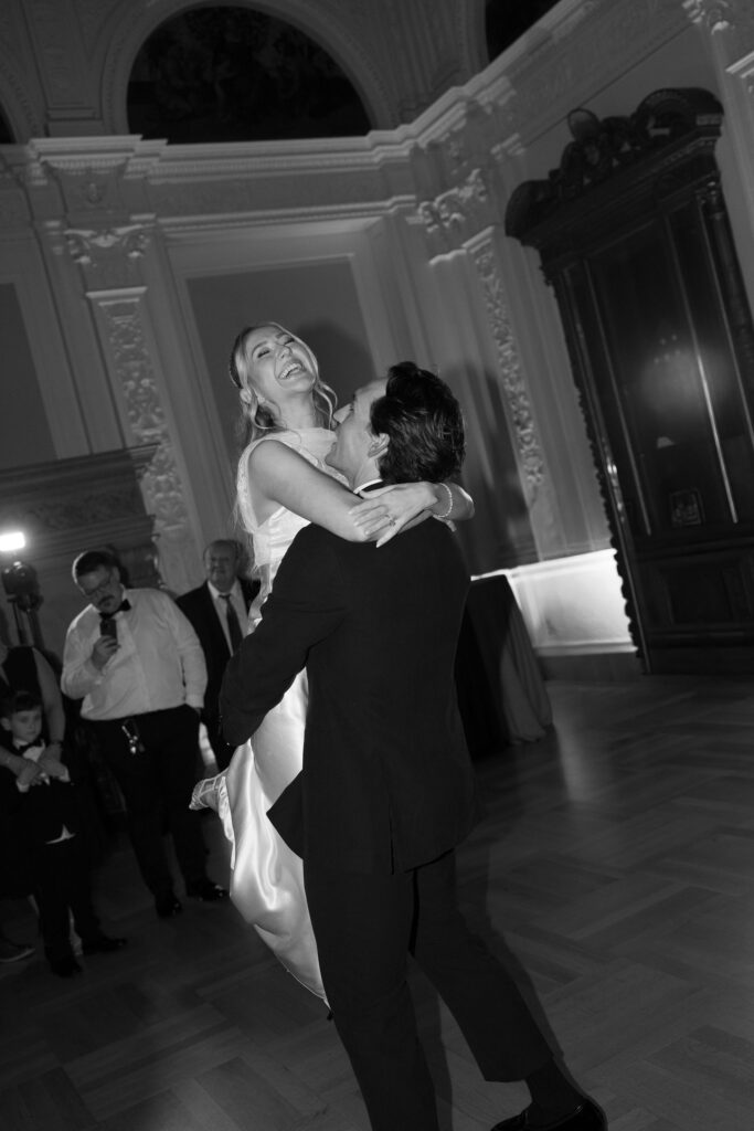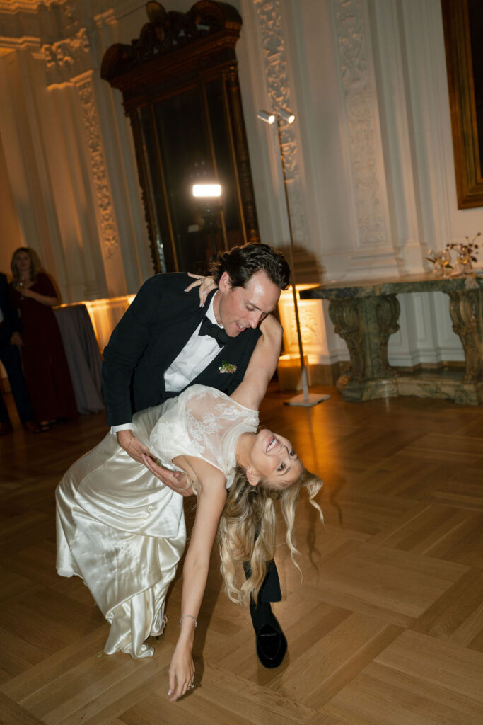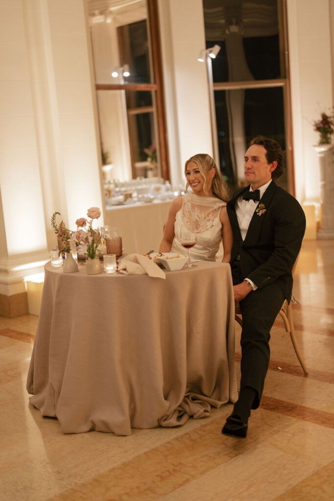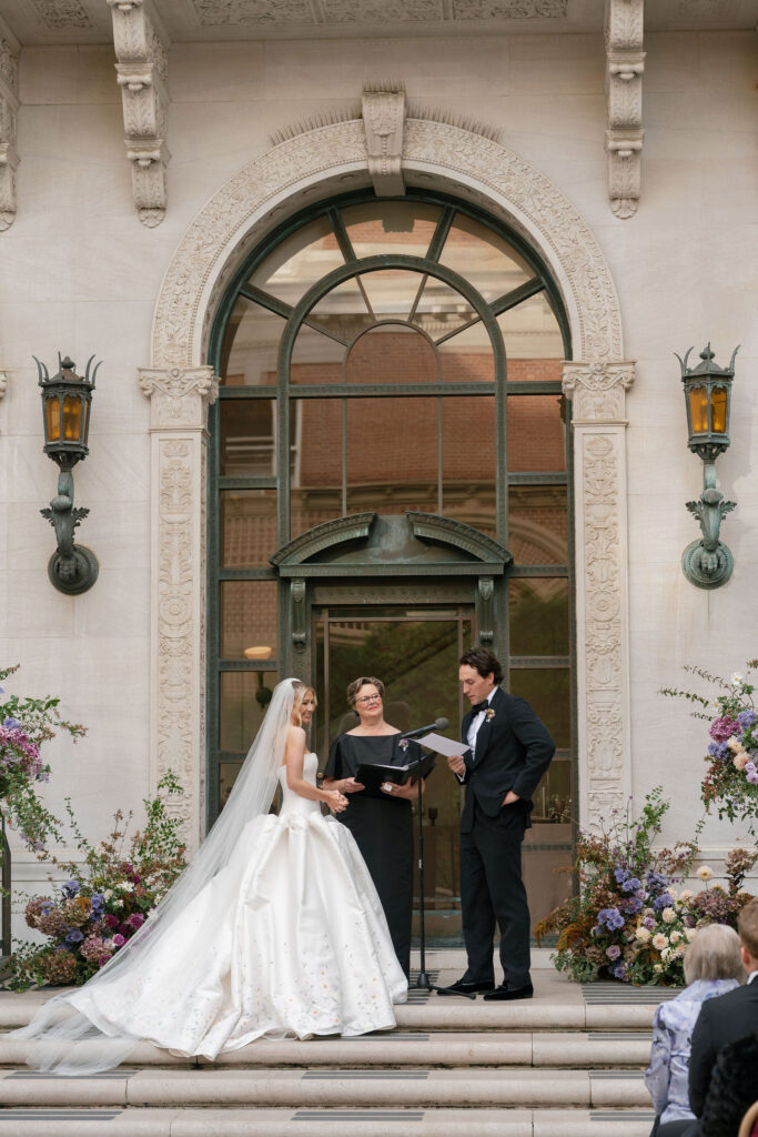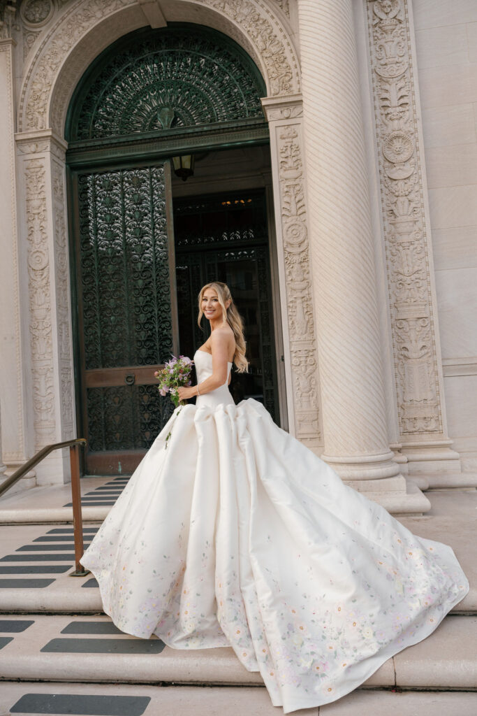 Flood Mansion is one of our favorite San Francisco venues to photograph weddings at because of it’s beautiful architecture, lighting, and views of the Golden Gate Bridge. For Jenny and Pete’s wedding, we worked alongside Dream A Little Dream Events who beautifully designed a chic, modern feel that blended perfectly with the historic charm of Flood Mansion. Shades of lavender and dusty rose were in every detail, from the gorgeous flowers by M Flora Design to the stationery, linens, tabletop rentals, and even our bride’s dress! Jenny wore a stunning Nicole + Felicia gown with painted florals on the hem, truly one of the most beautiful dresses we’ve photographed! Later in the evening, she changed into a more modern, chic Danielle Frankel dress that was perfect for dinner and dancing. One of the highlights of their wedding was their adorable Golden Retriever who joined them during the ceremony and even waited up at the alter for Jenny to walk down the aisle!